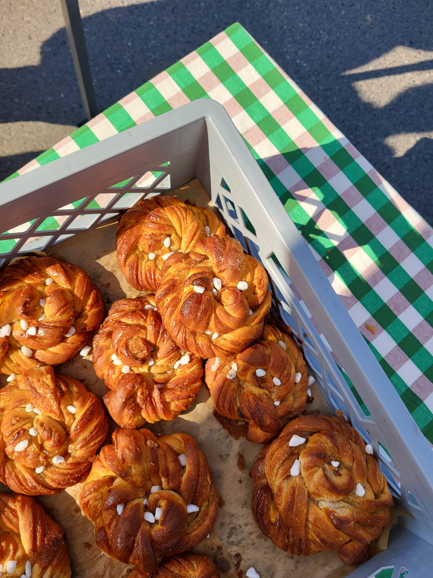 Eén keer per maand vind je Patisseriem op de zaterdagmarkt in Halle met een kraam vol verse koffiekoeken.